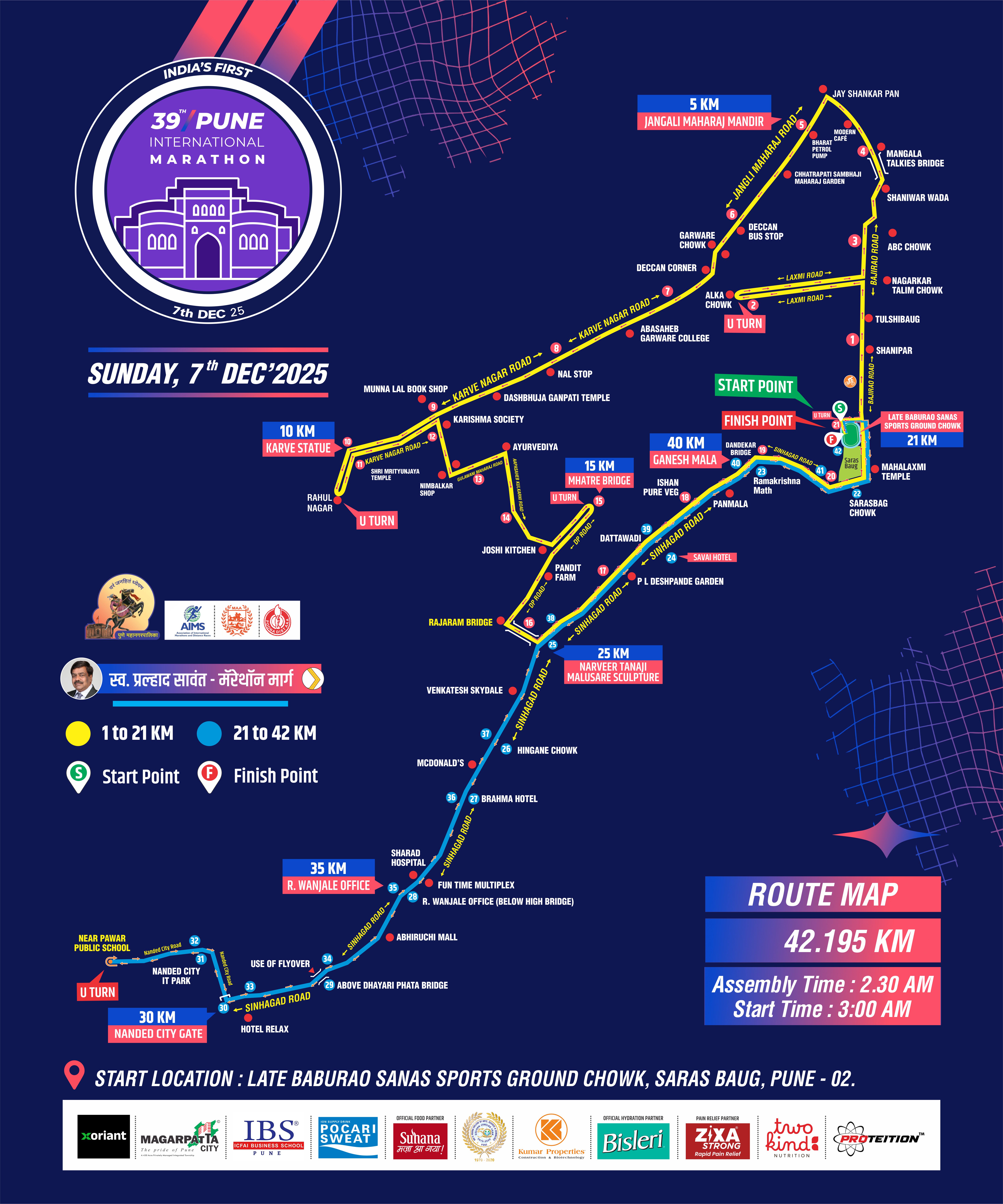 2. Event start timings are tentative and may slightly change by the Pune Marathon Organising Committee.